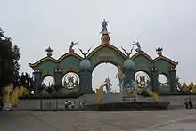 Other attractions in the park are: a 'Fairy Tale House Underworld and Water park' with a total area of about 6 hectares (15 acres); an artificial cave system, a large fish statue; in one of the large islands of 89 islets in the lake Vietnamese traditional culture is on display with 2061 cultural and historical items, which include the Bodhisattva of Compassion with thousands of hands and eyes. The flora found in the lake precincts are Rhodomyrtus tomentosa, Melastoma candidum, Cratoxylon spp. and many more. The lake precinct (reservoir area) also is home for 40 species of birds and 15 species of mammals. Duck species seen in the island within the lake during the winter are: Dendrocygna javanica, Anas crecca and A. acuta. A small breeding centre of Ardeola bacchus and Egretta spp. has also been established on an island within the lake. Since a very large number of storks and many other birds, are seen in an island in the lake, it is also known as "Stork Island", and another island in the lake where large number of goats has been named as 'Goat Island'.[1][2][3][4]