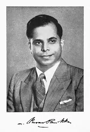 Panikkar was born 17 May 1913 in Kottayam, Kerala. He was the only son of his parents Sankunni Menon and JJanaki. His father was a Headmaster of a Government High School in Travancore State. Panikkar did his primary, secondary and initial college education from C. M. S. College, Kottayam. A doctoral degree (DSc) holder from the University of Madras, he was reported to have undertaken research on marine organisms,[5] conducted 22 voyages in the Indian Ocean for collecting specimens[6][7] and credited with the compilation of a series of atlases.[3] His efforts were also reported behind the establishment of the National Institute of Oceanography (NIO), the Central Marine Fisheries Research Institute, Central Inland Fisheries Research Institute, Central Institute of Fisheries Technology, Central Institute of Fisheries Education and Central Institute of Fisheries Operatives.[3] He served as the Head of the Zoology Department at University College, Thiruvananthapuram, as the director of the Zoological Laboratory at the University of Madras, as the Officer on Special Duty at the Ministry of Agriculture (India), as the director of the International Indian Ocean Expedition, as the director of the National Institute of Oceanography and as a member of the National Commission on Agriculture.[3] He also served as a member of the Indian National Science Academy and the Kerala State Planning Board and sat on the editorial boards of journals such as Journal of the Zoological Society of India, Indian Journal of Experimental Biology, Indian Journal of Marine Science, and Marine Biology.[3]
