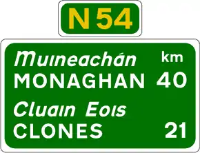 The N54 is a national secondary road in the Republic of Ireland connecting the towns of Monaghan and Cavan. It is in three sections, separated by two sections in Northern Ireland classified as parts of the A3.