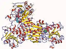- You KS (1985). "Stereospecificity for nicotinamide nucleotides in enzymatic and chemical hydride transfer reactions". CRC Critical Reviews in Biochemistry. 17 (4): 313–451. doi:10.3109/10409238509113625. PMID 3157549.