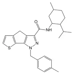 NESS-040C5 is a potent cannabinoid agonist which was developed for the treatment of glaucoma.[1] It has reasonable selectivity for the CB2 receptor subtype, having a CB2 affinity of 0.4nM, and 25x selectivity over the related CB1 receptor.[2]