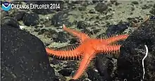 This is a pioneering use of what NOAA calls "telepresence technology".[3] The Okeanos Explorer is the only vessel owned by the U.S. government that is dedicated to exploring the seabed and ocean crust.[4] The ship is named after Okeanos, the Ancient Greek god of the sea, from which also comes the word "ocean".