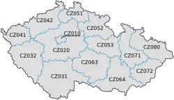 The Nomenclature of Territorial Units for Statistics (NUTS) is a geocode standard for referencing the subdivisions of the Czech Republic for statistical purposes.[1] The standard is developed and regulated by the European Union.[2] The NUTS standard is instrumental in delivering the European Union's Structural Funds. The NUTS code for the Czech Republic is CZ and a hierarchy of three levels is established by Eurostat. Below these is a further levels of geographic organisation - the local administrative unit (LAU). In the Czech Republic, the LAU 1 is districts and the LAU 2 is municipalities.