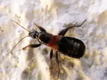 The insect family Nabidae contains the damsel bugs. There are over 500 species in 20 genera.[1] They are soft-bodied, elongate, winged terrestrial predators. Many damsel bugs catch and hold prey with their forelegs, similar to mantids. They are considered helpful species in agriculture because of their predation on many types of crop pests.[2]