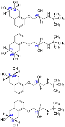 Nadolol is a mixture of stereoisomers. It is polar and hydrophilic, with low lipid solubility.[22]
