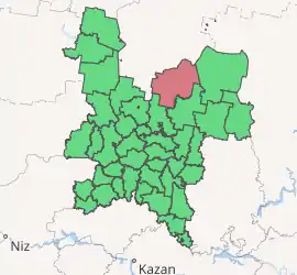 Nagorsky District (Russian: Наго́рский райо́н) is an administrative[1] and municipal[5] district (raion), one of the thirty-nine in Kirov Oblast, Russia. It is located in the north of the oblast. The area of the district is 7,236 square kilometers (2,794 sq mi). Its administrative center is the urban locality (an urban-type settlement) of Nagorsk.[1] Population: 10,336 (2010 Census);[2] 13,186 (2002 Census);[7] 16,577 (1989 Census).[8] The population of Nagorsk accounts for 47.4% of the district's total population.[2]
