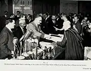 In 1919, Naguib Mahfouz was granted the Order of the Nile. In 1935, he was elected Honorary Fellow of the Royal College of Obstetricians and Gynaecologists of England, an honour only bestowed on five eminent doctors at any one time. In 1937, he became a Fellow of each of the Royal College of Physicians of England and of the Academy of Medicine of New York. During the same year, he was granted the title of pasha, the highest honour bestowed on a civilian in Egypt. In 1943, the Royal College of Surgeons of England elected Sir Winston Churchill, Chiang Kai-shek and Professor Naguib Mahfouz as Honorary Fellows of the College, the highest honour the Royal College can bestow. As Mahfouz could not make it to London because of lack of transport during World War II, the Royal College of Surgeons Council unusually enough conferred the degree on Naguib Mahfouz in Cairo. On 1 July 1947, the Royal Society of Medicine of England bestowed its Honorary Fellowship upon Professor Naguib Mahfouz together with Sir Alexander Fleming, the discoverer of Penicillin, and an atomic scientist. During the same year, Mahfouz was also granted the Honorary Fellowship of the Royal Society of Gynaecology and Obstetrics of Edinburgh. Naguib Mahfouz was granted the Medal of Education as well as the King Farouk's Prize for Medical Sciences in 1951. In 1956, The Royal College of Obstetricians and Gynaecologists invited Mahfouz to deliver the Fletcher Shaw Memorial Lecture, an honour only conferred on Fellows of the College "whose research would have contributed to noticeable progress in obstetrics and gynaecology". So many applications to attend came in, that the venue of the lecture had to be moved from the College's lecture hall to the Royal Society of Medicine in London. In 1960, President Gamal Abdel Nasser granted Mahfouz the First Class Order of Merit and the State Prize of Distinction for Science. President Anwar Sadat subsequently granted him the highest accolade post-humously.