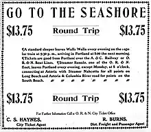 - "Go to the Seashore", Walla Walla Evening Statesman (advertisement), Walla Walla, Washington, vol. 33, no. 27, 6, col.3, Aug 22, 1906