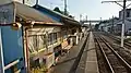 The station platform, looking west, with Nakanocho Depot on the left, in October 2015