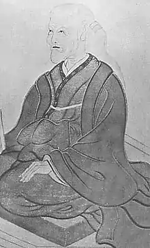 On 26 October 1837, Nakayama Miki's eldest son, Shūji, felt an acute pain in his leg while sowing barley in the fields. A village doctor named Gensuke was summoned to treat the leg.[28] When Shūji's condition did not improve, the family called for Nakatano Ichibei, a shugenja (ascetic monk) who was renowned in the area for his healing rituals. Ichibei offered prayers on three occasions, but after each time Shūji had only temporary relief before the pain returned. After Zenbei, Miki's husband, made another entreaty to Ichibei, he agreed to conduct an incantation (yosekaji), a ritual intended to invoke the Buddha's compassion.[29] Over the course of a year, the incantation was conducted nine times.[lower-alpha 5]