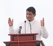 Dr Nalaka Godahewa’s political journey began after 2015 when he became a leading speaker for the opposition at many public forums[67] Along with a few like-minded professionals he pioneered the establishment of the 'Viyathmaga' ( Professionals for a Better Tomorrow) organization which functioned as the main think tank for the Presidential candidate Mr Gotabaya Rajapaksa who won the 2019 election and became the 7th next President of Sri Lanka.[68] Dr Nalaka contested the parliamentary election of 2020 as a candidate of Sri Lanka Podujana Peramuna[69] He received the highest preferential votes from Gampaha District and got elected to the parliament on 5 August 2020. The 325,479 votes he received was the highest ever for someone who contested a parliamentary election in Sri Lanka for the first time[70] Following the mass resignation of the Sri Lankan cabinet in the wake of the 2022 Sri Lankan protests, he was appointed as the Minister of Mass Media by President Gotabaya Rajapaksa on 18 April 2022.[71]