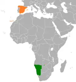 Namibia–Spain relations are the bilateral and diplomatic relations between these two countries. Namibia is accredited to Spain from its embassy in Paris, France.[1] Spain has an embassy in Windhoek.[2]