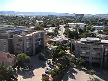 The Namibia University of Science and Technology consists of two campuses and a number of scattered former residential buildings all located in the Windhoek West suburb close to the city centre. The main campus consists of the structures originally erected for the Academy for Tertiary Education.[7] At its center is the Elisabeth house, Windhoek's former obstetric hospital designed by Wilhelm Sander in 1907. Elisabeth house is a national monument since 1986 and houses the Senate chambers and the office of the Vice-Chancellor.[8]