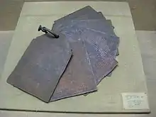 Some of the earliest inscriptions in Nandinagari have been found in Tamil Nadu. The 8th century Narasimha Pallava's stone inscriptions in Mamallapuram on Tamil Nadu's coast, the 10th-century coins from Chola king Rajaraja's period, the Paliyam copper plate inscriptions of the 9th century Ay king Varagunam are all in Nandinagari script.[10][11] A Rigveda manuscript has been found written in Nandi nagari script,[12] as well as manuscripts of other Vedas.[13] Manuscripts of the first century BCE Vikramacarita, also known as the "Adventures of Vikrama" or the "Hindu Book of Tales",[14] have been found in Nandinagari script.[15]