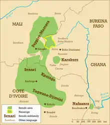 ![]() The Nanerige area, some neighbouring languages and the other Senufo languages | |