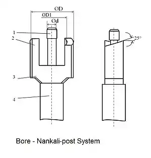 The Nankali post system is a post and cores prosthesis, which is used in prosthodontology and dental restoration. This post and core consists of a single smooth or serrated post and core which has an additional circle ring (counter sink) around it.