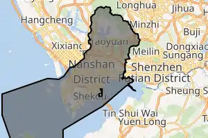 ![]() Nanshan District (the lower left, highlighted in green) in Shenzhen | |