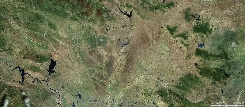 The latitude of the entire prefecture ranges from 32° 17' to 33° 48' N, while the longitude ranges from 110° 58' to 113° 49' E, and the prefecture spans 26,600 square kilometres (10,300 sq mi). The city lies within the Nanyang Basin, which is part of a region in Central China that lies in the gap between the eastern end of the Qin Mountains and the source of the Huai River. Thus, using those two geographic features as the standard dividing line, it is difficult to classify the city into northern or southern China.