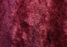 Since the 15th century, the term nap has generally referred to a special pile given to the cloth.[2] The term pile refers to raised fibres that are there on purpose, rather than as a by-product of producing the cloth.[4] In this case, the nap is woven into the cloth, often by weaving loops into the fabric, which can then be cut or left intact. Carpets, rugs, velvet, velour, and velveteen, are made by interlacing a secondary yarn through woven cloth, creating a nap or pile.