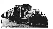 Transmission of power from the engine to the wheels was by a pneumatic transmission system called the "Hautier aerothermal transformer". It consisted of an air compressor, driven by the prime mover, which fed a compressed air motor which drove the wheels. Hautier is not identified but he may have been Camille Jean Hautier who held several patents for compressed air transmission systems, e.g. GB190928918 and GB191308846. [4] [5] The general construction of the machine was similar to that of other locomotives of its time. From the little information available, it seems that it was equipped with a handbrake only.