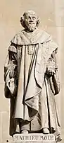 - Eastern side of the Cour Napoléon: Louvois, by Aimé Millet; Saint-Simon, by Pierre Hébert; Joinville, by Jean Marcellin; Esprit Fléchier, by François Lanno; Commynes, by Eugène-Louis Lequesne; Jacques Amyot, by Pierre Travaux; Mignard, by Debay fils; Massillon, by François Jouffroy; Jacques I Androuet du Cerceau, by Georges Diebolt; Jean Goujon, by Bernard Seurre; Claude Lorrain, by Auguste-Hyacinthe Debay; Grétry, by Victor Vilain; Jean-François Regnard, by Théodore-Charles Gruyère; Jacques Cœur, by Élias Robert; Enguerrand de Marigny, by Nicolas Raggi; Chénier, by Auguste Préault; Jean-Balthazar Keller, by Pierre Robinet; and Antoine Coysevox, by Jules-Antoine Droz.