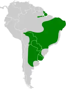The narrow-billed woodcreeper (Lepidocolaptes angustirostris) is a species of bird in the Dendrocolaptinae subfamily. It is found in Argentina, Bolivia, Brazil, Paraguay, Suriname, and Uruguay. Its natural habitats are subtropical or tropical dry forests and dry savanna. As all members of its subfamily, it is a creeping bird which lives on small arthropods and vertebrates it catches under the bark of trees. The woodcreeper nests in cavities, both natural and bird-(e.g. woodpecker)made. It lays two to three white eggs, brooded jointly by the pair.[2]