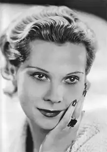 Her first film was L'epervier (1933), directed by Marcel L'Herbier, her husband's cousin.[8] It was the beginning of her career as a movie actress, taking parts in several European movies, including Sir Alexander Korda's The Private Life of Don Juan (1934). She eventually moved to the United States, where she had a small role in George Cukor's Sylvia Scarlett (1935), a film starring Katharine Hepburn, who became a lifelong friend. Princess Paley's acting skills were modest.[8] Her name and her beauty were her main assets, and her film career never took off.[8] In 1936, she returned briefly to France to film The New Men (Les Hommes nouveaux) with Jean Marais, under the direction of Marcel L'Herbier.[8] Les Hommes nouveaux was a success in Europe, but marked the end of Princess Paley's acting career.
