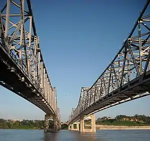 | Longest span | 3 848 feet (258 m) spans per bridge |