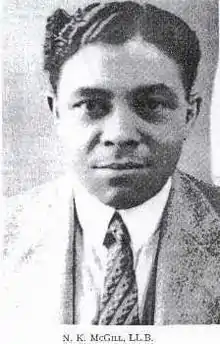 Nathan K. McGill (1888–1946) was the first African American to serve as assistant attorney general for the State of Illinois. He was also the first African American appointed to the Chicago Library Board.[1][2]