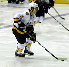 At the completion of his college career Longpre signed an amateur try-out contract with the American Hockey League's (AHL) Worcester Sharks.[21] He played in eight games for Worcester registering one assist.[17] The following season Longpre attended the Vancouver Canucks prospect camp as an unsigned player. He was one of the oldest players in camp.[22] Longpre excelled at the camp and in the corresponding Young Stars Tournament he was among the top point producers for Vancouver, recording three points in three games.[23][24] Longpre's performance earned him an invite to the Canucks main training camp.[25] He failed to make the Canucks roster, but was assigned to their AHL affiliate, the Chicago Wolves, who signed him to a professional try-out contract.[26][27] After his first 11 games with the Wolves he registered five goals and three assists and was signed to a standard player's contract for the remainder of the season.[28] Longpre played in 39 games for the Wolves registering 18 points before being traded to the Springfield Falcons for future consideration.[29] Playing in 20 games for the Falcons Longpre scored 3 goals.[17] During the off-season Longpre re-signed with the Wolves as a free agent.[30]