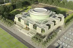 The National Assembly Building of Vietnam (Vietnamese: Tòa nhà Quốc hội Việt Nam), also known as the New Ba Đình Hall (Hội trường Ba Đình mới), is a public building located on Ba Đình Square across from the Ho Chi Minh Mausoleum in Hanoi, Vietnam. Construction started on October 12, 2009 and finished on October 20, 2014. The building is used by the National Assembly of Vietnam for its sessions and other official functions.