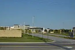 The National Bio and Agro-Defense Facility (NBAF) is a biosafety level 4 research laboratory in Manhattan, Kansas, operated by the United States Department of Agriculture. Slated to open in Summer 2022, the facility is designed to combat biological threats involving human, zoonotic, and foreign animal diseases. The NBAF will be replacing the aging Plum Island Animal Disease Center (PIADC) on Plum Island, New York.[1] The primary research tenants of the facility will be the Agriculture Research Service (USDA-ARS) and Animal Plant Health Inspection Service, Veterinary Services (USDA-APHIS-VS).[1][2] Construction on the 574,000-square-foot (53,300 m2) facility officially began in May 2015, and was scheduled to be completed by May 2021. The ongoing COVID-19 pandemic, however, has delayed scheduled commissioning to October 2021, followed by further delays to Spring, and, subsequently, Summer 2022.[1][3][4][5] Operations will be fully transferred from the Plum Island facility by 2023.[6] When fully operational, the facility will employ between 250 and 350 people.[1][2] The facility is a constituent member of the Biosafety Level 4 Zoonotic Laboratory Network, and is currently led by Alfonso Clavijo.