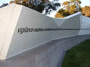 The National Emergency Services Memorial is a memorial located on the northern shore of Lake Burley Griffin at the southern end of Anzac Parade in Canberra, the national capital of Australia. It was dedicated in July 2004.[1]