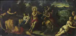 Italian collection starts with the works of the 14th century.[5] One of the most remarkable ones is "Christmas", canvas of an unknown artist of the Botticelli circle.[6][7] "Apollo and Pan" by famous Tintoretto is a prominent example of High Renaissance.[6] Portrait genre of the 17th century is represented by the work of Bernardo Strozzi "Portrait of Nikola Kuchi" and 2 portraits by Guercino, member of the Bolognese School. Pontormo's canvas illustrate earlier period of portrait genre.