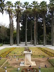 The National Garden[1][2] (formerly the Royal Garden) (Greek: Εθνικός Κήπος)(it was named Royal Garden until 1974) [3] is a public park of 15.5 hectares (38 acres) in the center of the Greek capital, Athens. It is located between the districts of Kolonaki and Pangrati, directly behind the Greek Parliament building (The Old Palace) and continues to the South to the area where the Zappeion is located, across from the Panathenaiko or Kalimarmaro Olympic Stadium of the 1896 Olympic Games. The Garden also encloses some ancient ruins, column drums and Corinthian capitals of columns, mosaics, and other features. On the Southeast side are the busts of Ioannis Kapodistrias, the first governor of Greece, and of the Philhellene Jean-Gabriel Eynard. On the South side are the busts of the celebrated Greek poets Dionysios Solomos, author of the Greek National Hymn, and Aristotelis Valaoritis.