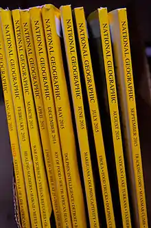 The magazine began to feature some pages of color photography in the early 1930s, when this technology was still in its early development. During the mid-1930s, Luis Marden (1913–2003), a writer and photographer for National Geographic, convinced the magazine to allow its photographers to use the so-called "miniature" 35 mm Leica cameras loaded with Kodachrome film over bulkier cameras with heavy glass plates that required the use of tripods.[18] In 1959, the magazine started publishing small photographs on its covers, later becoming larger photographs. National Geographic photography quickly shifted to digital photography for both its printed magazine and its website. In subsequent years, the cover, while keeping its yellow border, shed its oak leaf trim and bare table of contents, to allow for a full page photograph taken for one of the month's articles. Issues of National Geographic are often kept by subscribers for years and re-sold at thrift stores as collectibles. The standard for photography has remained high over the subsequent decades and the magazine is still illustrated with some of the highest-quality photojournalism in the world.[19] In 2006, National Geographic began an international photography competition, with over eighteen countries participating.[20]