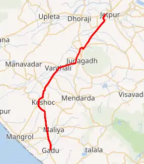 NH151 connects Gadu, Vanthali, Junagadh and Jetpur in the state of Gujarat.[4]