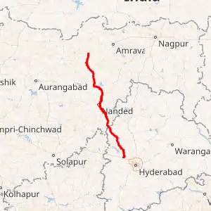 - At Nanded with NH 222 connecting Kalyan - Ahmednagar - Pathardi - Parbhani - Basmat - Nanded - Nirmal