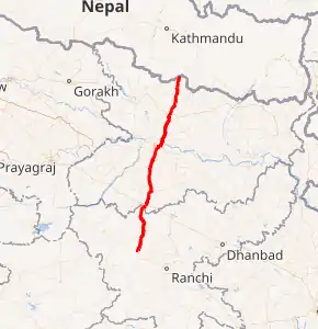 Sonbarsa (Indo/Nepal Border), Sitamarhi, Muzaffarpur, Hajipur, Patna, Punpun, Gaya, Bodh Gaya, Dobhi - Jharkhand border.[3]
