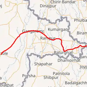 Gajol - Daulatpur - Bansihari- Gangarampur - Harsura - Balurghat - Hilli (near Indo/Bangladesh Border).[1][4]