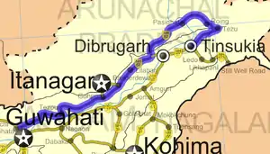 National Highway 515 (NH 515) is a National Highway in the Northeastern Indian states of Assam and Arunachal Pradesh. NH 515 starts at the intersection of NH 15 north of Dhemaji and generally traverses east and northeast. It runs for a distance of 111 km (69 mi), initially through Assam and the rest in Arunachal Pradesh.[1]