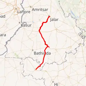 Jalandhar, Nakodar, Shahkot, Moga, Badhni, Barnala, Handiaya, Mansa, Jhunir, Sardulgarh - Haryana border.[3][4]