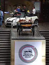 By 1972, the collection exceeded 300 exhibits.[5] In a ceremony performed by the Duke of Kent the new purpose-built museum building in the parkland surrounding Palace House was opened on 4 July 1972:[6] the name was changed to the "National Motor Museum", reflecting a change of status from a private collection to a charitable trust and highlighting Montagu's stated aim to provide Britain with a National Motor Museum "worthy of the great achievements of its motor industry".[6] The opening of the museum coincided with the UK launch of the Jaguar XJ12 which made it an appropriate week for celebrating the UK motor industry.[6] The museum is run by the National Motor Museum Trust Ltd, a registered charity.[7]