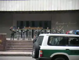 Colombian National Policemen guarding the Colombian Inspector General's building.