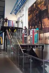 In order to provide step-free access from the main hall to the Workshop Gallery, the Museum Inclinator was constructed. Besides its primary function, this also served to demonstrate the workings of a funicular railway. To that end its workings were exposed in the style of a larger open air funicular railway, rather than being concealed in the fabric of the building as is more normal for intramural lifts.[70] It ceased working due to lack of spare parts, and with no plans for repair it was removed by August 2013.