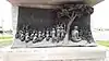 To the left of the main memorial there is a life sized statue of Gandhi with 78 volunteers. These statues are made of bronze.[1] An Open Call for sculptors was made and 40 sculptors were selected from India, Austria, Bulgaria, Burma, Japan, Sri Lanka, Tibet, UK and United States. Each sculptor created two sculptures each. After the clay sculptures had been completed, molds and fiber casts were made and the sculptures were cast in silicon-bronze alloy by Studio Sukriti in Jaipur.[7]