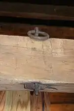 The pen was originally owned by Captain John Anderson, a veteran of the Revolutionary War and slave trader. Slaves from the area were transported from Dover, Kentucky to slave markets in Natchez, Mississippi and New Orleans, Louisiana; they were held in this pen for a few days or several months, as he and other traders waited for favorable market conditions and higher selling prices. The pen has eight small windows, the original stone floor and fireplace. On the second floor are a row of wrought iron rings (see photo at right) through which a central chain ran, tethering men on either side. Male slaves were held on the second floor, while women were kept on the first floor, where they used the fireplace for cooking.