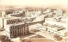 Former Idaho Territory Governor and former U.S. House of Representative Thomas W. Bennett made an application to the U.S. Army's Signal Service to establish stations at Boise on February 9, 1876.[4] On May 21, 1877, the application was granted and Sergeant Barnet E. Light[5] was order per S. O. No. 62 to establish a station by July 1877.[4] On June 22, 1877, the station was established on the second floor of the Overland Hotel on the northwest corner of 8th and Main Street.[6] Weather observations began at the station on July 1, 1977. The station was moved to a third story addition to the Hotel shortly after Hosea Eastman bought it in 1878. The station was moved twice, next door to the Davis building in September 1880 and the Perrault Building on the southeast corner of Capital and Main Streets in January 1888. The weather instruments were on the roof except for the thermometers which were in a window shelter from 1877 to 1885. The thermometers placed in a Cotton region shelter on December 1, 1885. A lack of funding and Chief Signal Officer Adolphus Greely opening of a new station in Baker City, Oregon lead to the closure of the Boise station on June 30, 1890. Greenly felt the Baker City Station would be more valuable than the Boise station which was not supported by his forecasters in Washington.[7] Barnet Light, James Kenealy, Henry Boynton and William Korts were the only four observers during the stations 13 years in Boise.[1]