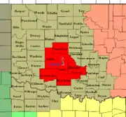 The Norman Weather Forecast Office – which operates as a branch of the National Weather Service's Southern Region Headquarters (SRH) division – manages three NEXRAD (WSR-88D) Doppler weather radar sites that cover its area of forecasting responsibility, based in Oklahoma City (radar identification code: TLX), serving central Oklahoma; Frederick (FDR), serving southwestern Oklahoma and western north Texas; and at Vance Air Force Base (VNX), serving north-central and northwestern parts of Oklahoma, and portions of southern Kansas.[2] The office has earned widespread recognition from local media outlets, especially in concern with certain weather conditions that are or are forecast to occur.[3][4] It has also received attention from national media, and was even recognized by United States President Barack Obama.[5][6][7]