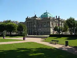 The National and University Library (French: Bibliothèque nationale et universitaire; abbreviated BNU) is a public library in Strasbourg, France. It is located on Place de la République, the former Kaiserplatz, and faces the Palais du Rhin.